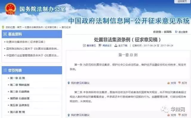 8月24日,国务院法制办公室发布《处置非法集资条例》征求意见:意见提交的截止时间为2017年9月24日。